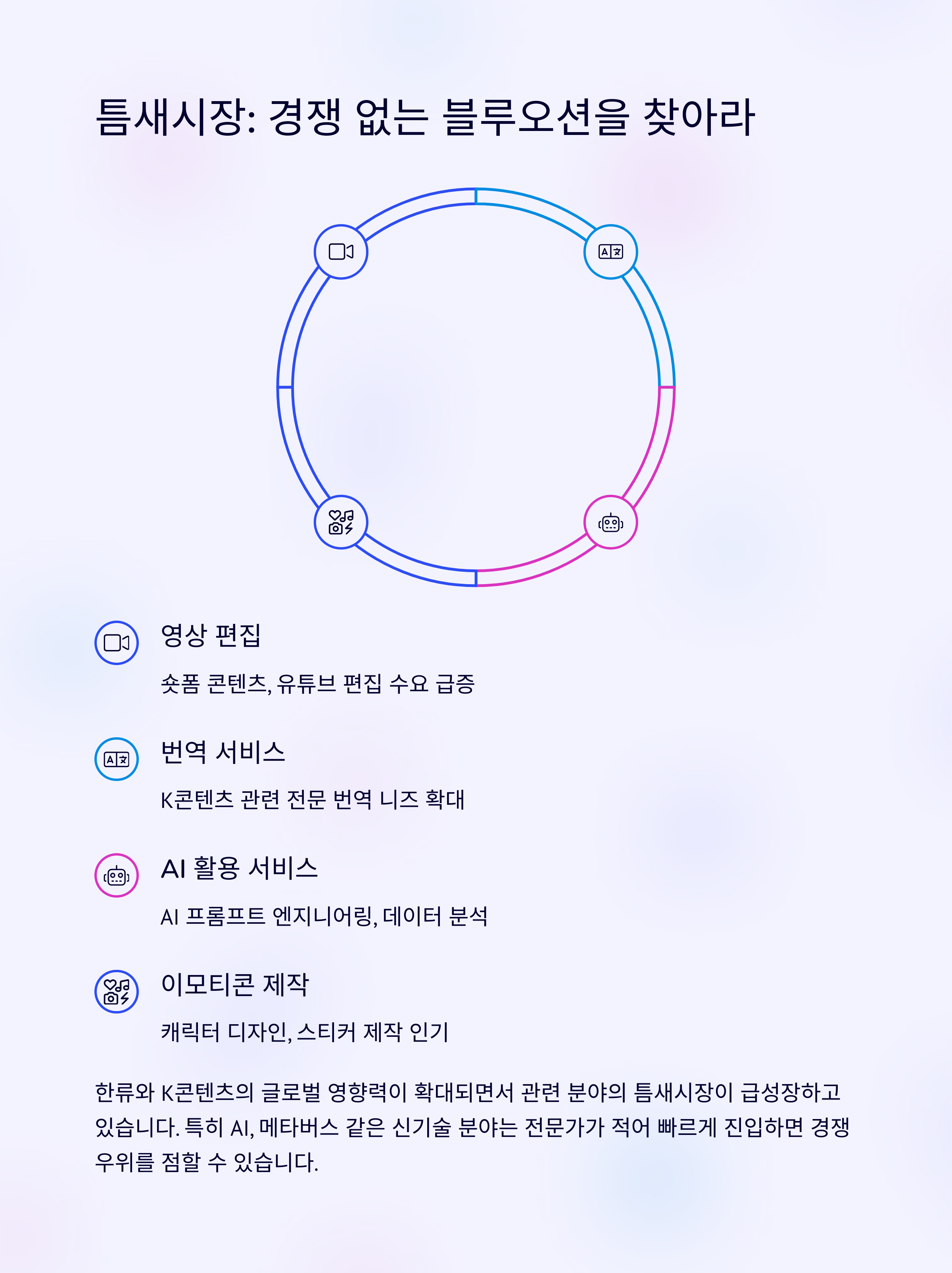 | 성공 전략 | 포트폴리오 구축, 프로필 최적화, 틈새시장 공략, 네트워킹 |