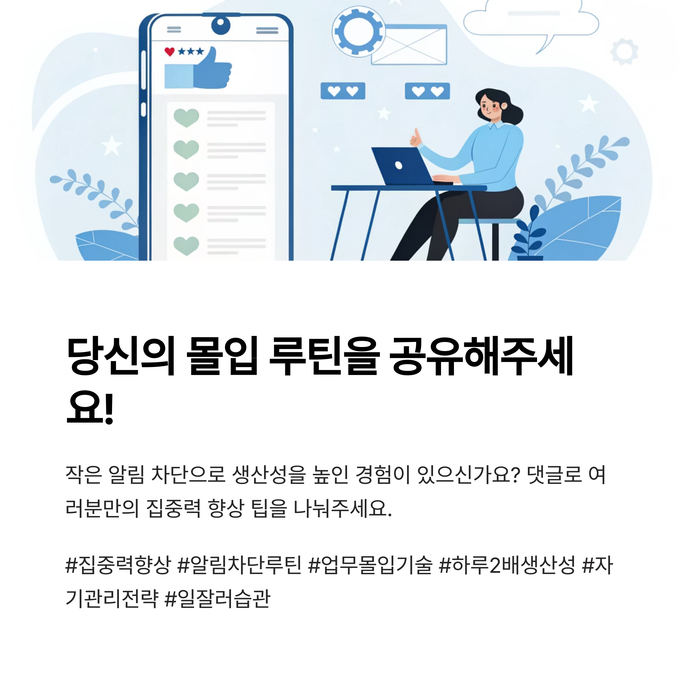 단순히 알림을 꺼두는 것만으로도 체감 생산성은 극적으로 향상됩니다.