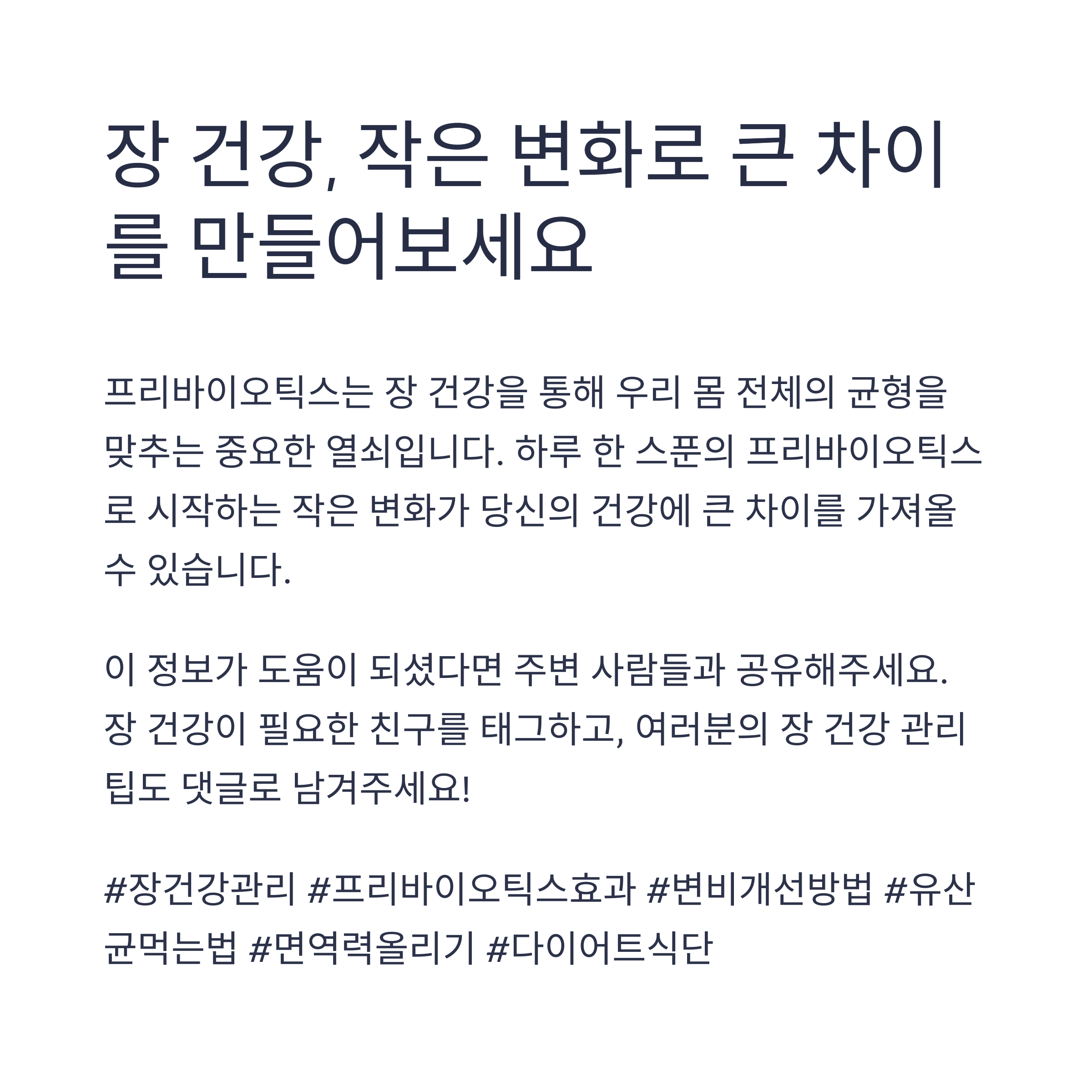 특히 평소 장이 예민하거나 변비가 잦은 사람들에게는 프리바이오틱스 섭취 후
