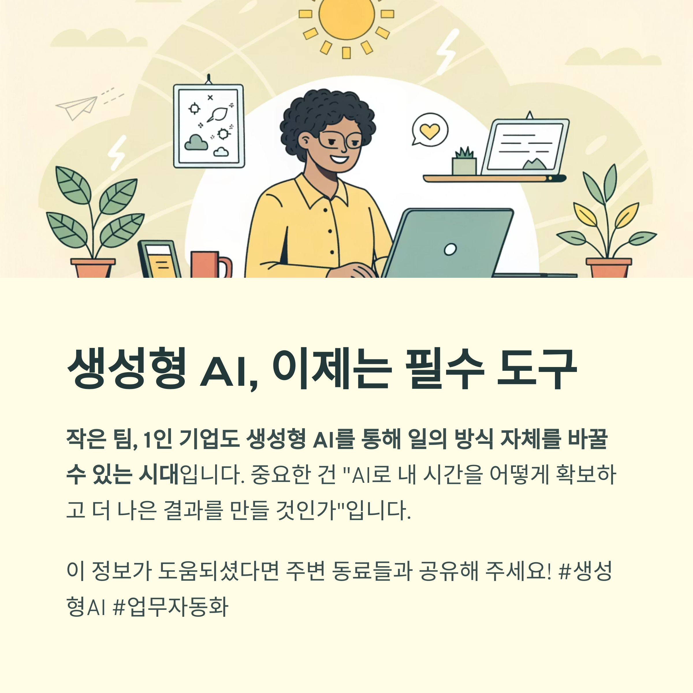 작은 팀, 1인 기업도 생성형 AI를 통해 일의 방식 자체를 바꿀 수 있는 시대입니다.