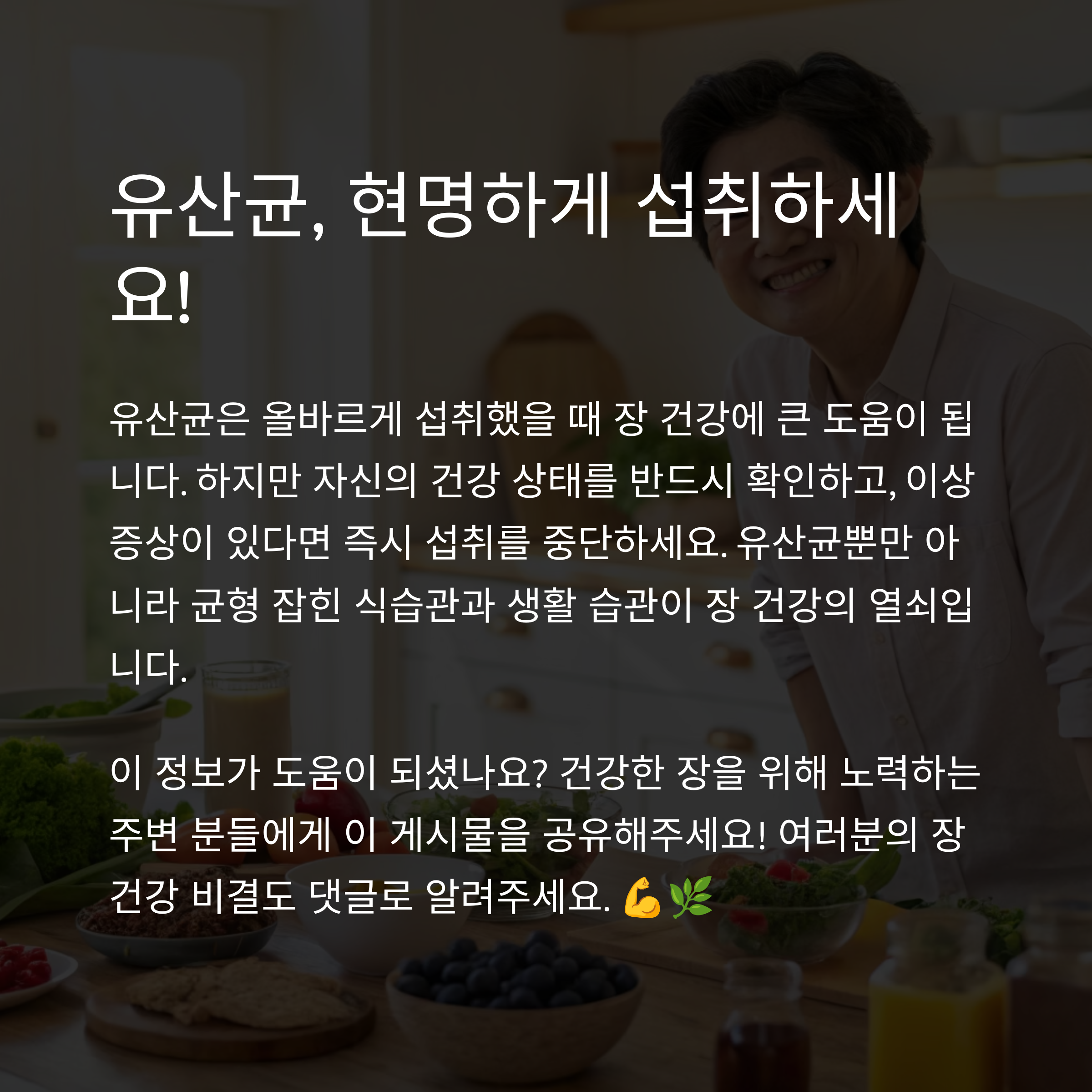 장 건강을 챙기기 위해 유산균을 찾는 소비자들이 많아졌습니다. 하지만 무조건 유산균을 먹는다고 좋은 결과를 기대할 수 있는 것은 아닙니다. 잘못된 유산균 선택이나 과다 복용은 오히려 부작용을 유발할 수 있어 주의가 필요합니다. 면역력이 약하거나 특정 질환이 있는 사람은 유산균이 도움이 되기보다는 해가 될 수 있는 경우도 있습니다. 이 글에서는 유산균 섭취 시 유의사항, 안전한 섭취 방법, 그리고 제품 선택 기준에 대해 자세히 안내드리겠습니다. 유산균 선택에 있어 어떤 점을 고려해야 하는지 실제 데이터와 사례를 기반으로 설명드리며, 건강에 도움이 되는 올바른 유산균 섭취법을 함께 알아보겠습니다.