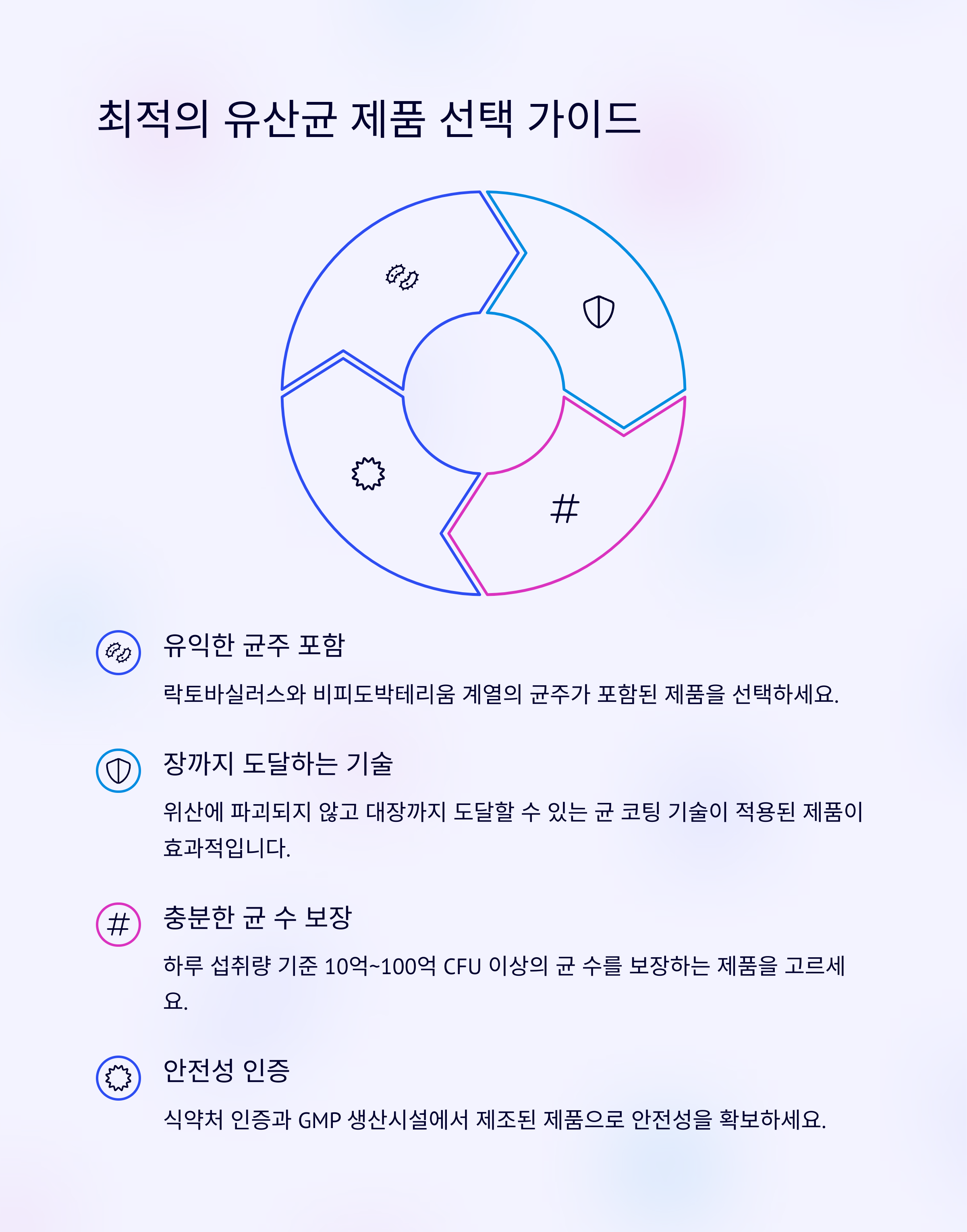 | 유산균 선택 기준 | 임상 검증된 균주와 품질 인증 제품이 중요 |