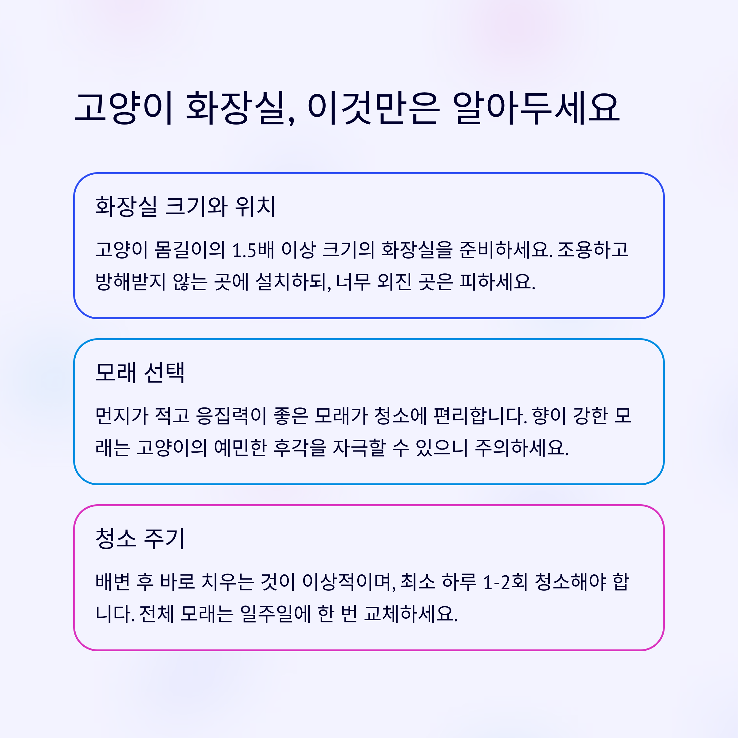 고양이 입양은 단순히 귀여운 반려동물을 들이는 게 아니라, 가족이 한 명 늘어나는 일이에요. 준비물 하나하나가 고양이의 행복한 삶을 위한 기반이 되니까 꼼꼼히 체크하고, 꾸준한 관심과 사랑을 나눠주세요. 첫날부터 완벽하지 않아도 괜찮아요. 함께 적응하며 만들어갈 시간이 있으니까요.
