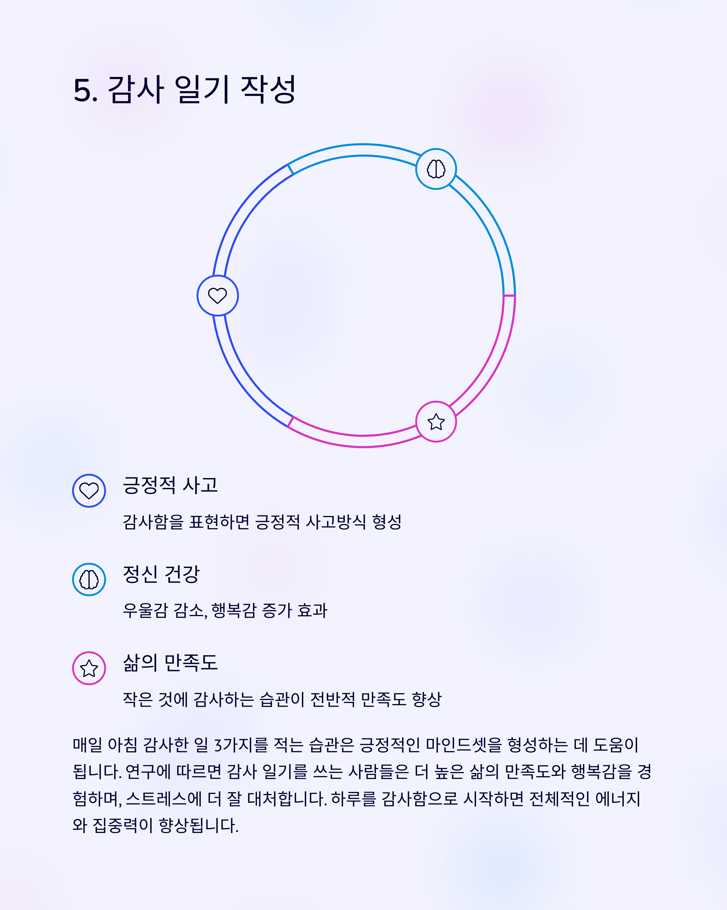 | 아침 루틴 | 집중력 향상 | 감사 일기 |